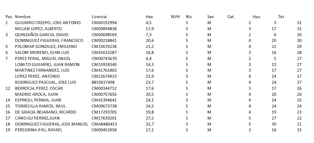 | 19º | Hugo Alvarez Barroso | 29'7 | |||||||||||||||||